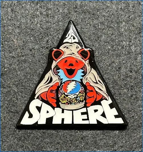 This is a limited edition fan designed pin for the Dead & Company's 2025 concert residency at the Las Vegas Sphere. Approximately 1 1/2" big, double posted and each version is a limited edition numbered (XX/35) collectible lapel pin. Available in 2 different color versions.